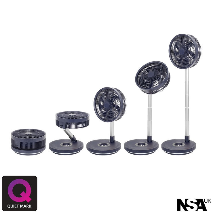 It has a telescopic stand so you can set it to the exact height you want; from a small desk up to a 100cm pedestal & everything in between. It can be used for 5 hours in cordless mode and is rechargeable with a USB Type-C port enabling use with a portable charger (USB portable charger is not included). This fan also offers an ambient night-light making it ideal for children's rooms. And come the end of the summer it answers the ‘what do I do with it now?’ question by folding down and packing away into a 30 x 15cm drum to be tucked away in a drawer.