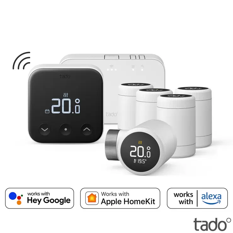 Comfortably set the temperature in each room individually with tado° wireless multi-zone control. Use the intuitive app, control tado° by voice command (works with Amazon Alexa, Apple HomeKit and Google Assistant) or change settings directly on the device.