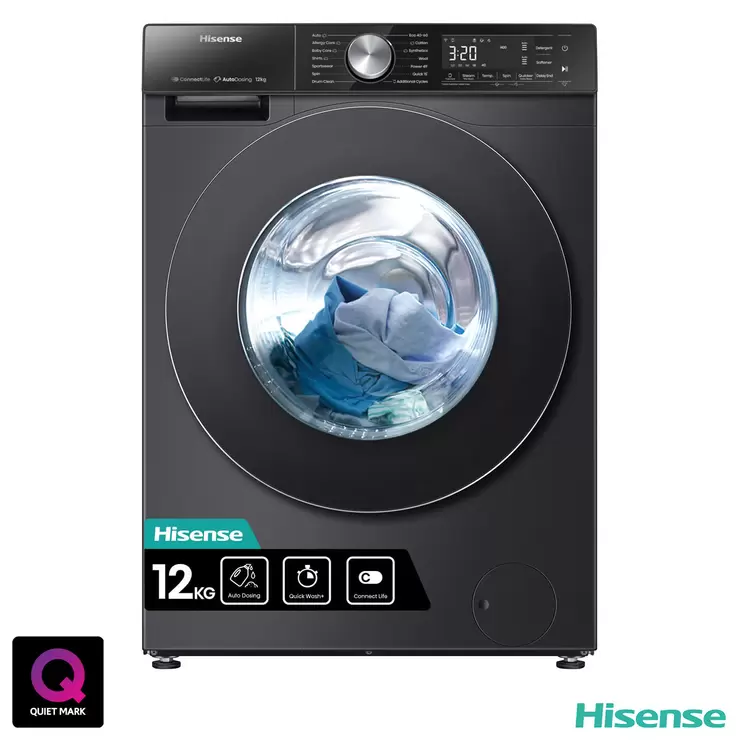 Hisense WF5S1245BB, 12kg, 1400rpm, Washing Machine A Rating in Black