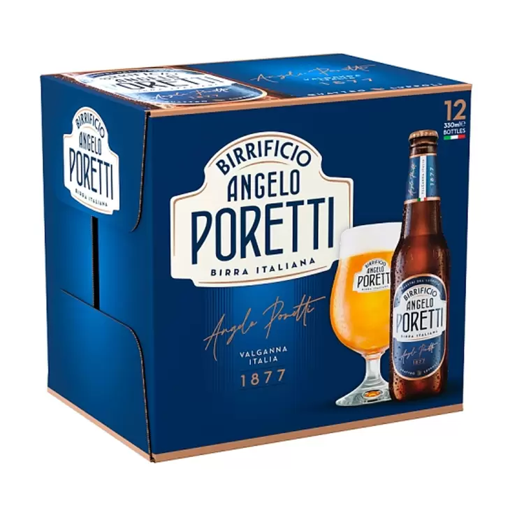 Poretti is a premium Italian lager crafted with four hops instead of two, creating a fuller, distinct flavour. This is characterised by a pillowy white head, brilliant clarity and a polished golden colour. With its sparkling carbonation, sweet malty body and assertive hoppy bitterness, it stands out as a truly exceptional brew.