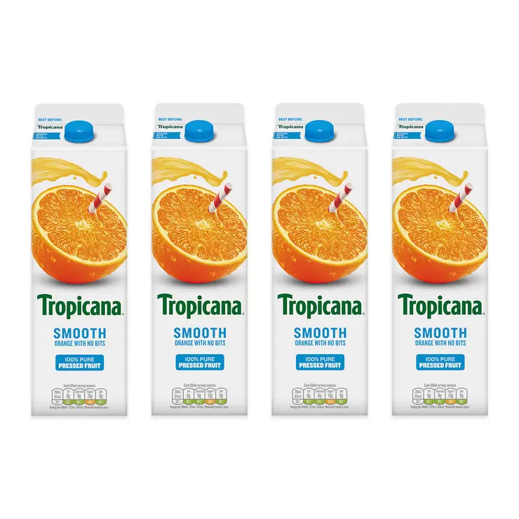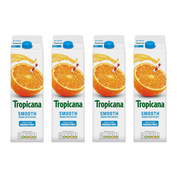 Tropicana Smooth Orange Juice, 4 x 900ml