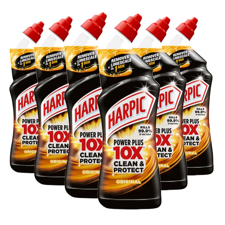 Harpic Power Plus is a powerful liquid toilet cleaner cleaning above and below the waterline. Harpic Power Plus has 10 actions: fast acting, limescale, tough stains, rust, below water, dirt build up, under rim, urine stains, 99.9% bacteria and freshens.