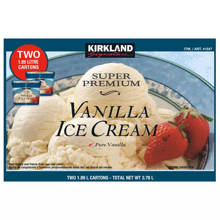 Kirkland Signature Premium Vanilla Ice Cream, 2 x 1.89L