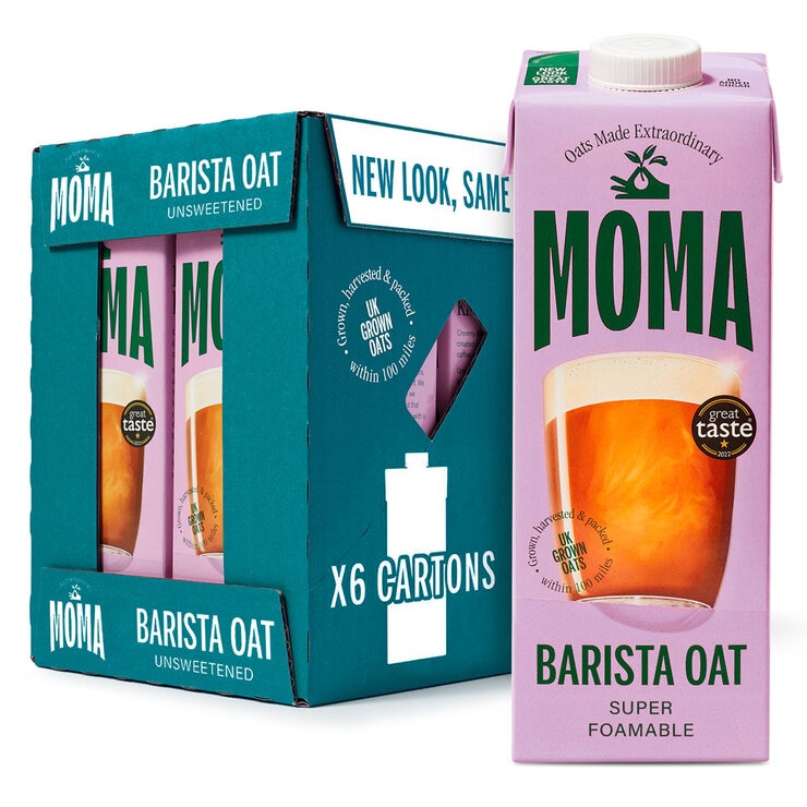 Moma Oat Drink Barista Edition is fully foamable for silky smooth coffees and is fortified with extra calcium and Vitamins D, B2 & B12 for a little extra goodness in every cup. This unsweetened oat drink is a source of beta-glucan, a dietary fibre linked to improving cholesterol levels and boosting heart health.