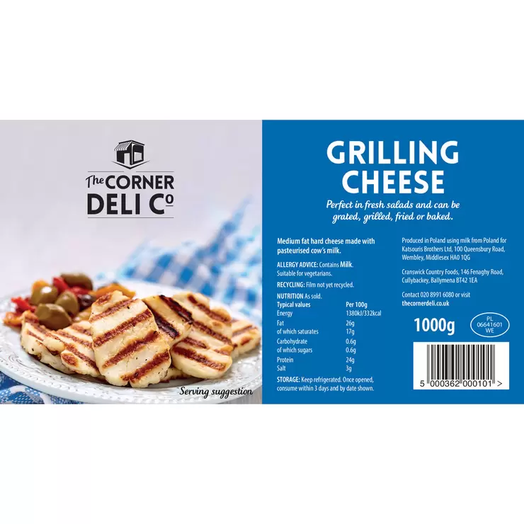 The Corner Deli Company Grilling Cheese is a Medium Fat hard cheese made with cow's milk. Available in 1kg block, it has many versatile uses. This cheese is perfect in fresh salads and can be grated, grilled, fried or baked. Grilling Cheese is also a perfect vegetarian option for a mouth-watering burger.
