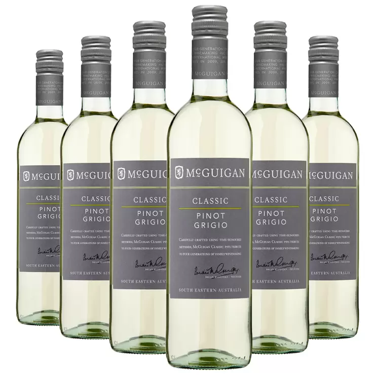Light pale straw in colour with green hues in the glass this Pinot Grigio has fresh lifted floral, pear and apricot aromas. This wine has a smooth lingering finish, with generations of McGuigan winemaking experience goes into every bottle.