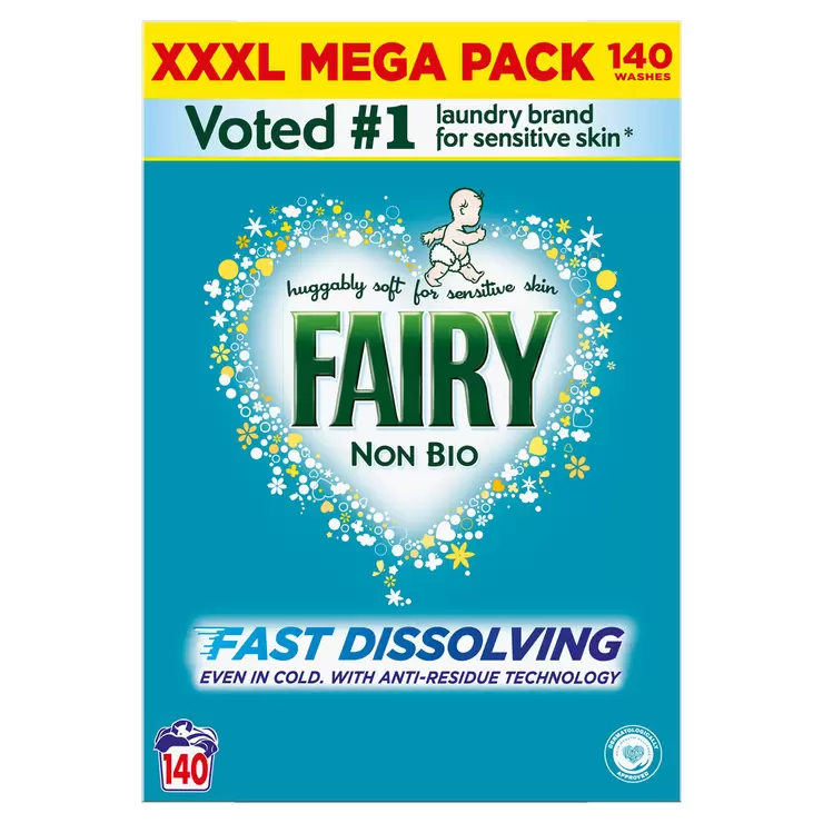 Fairy Non-Bio laundry powder is specially formulated to remove tough stains and deliver outstanding cleaning results, while being gentle to sensitive skin.