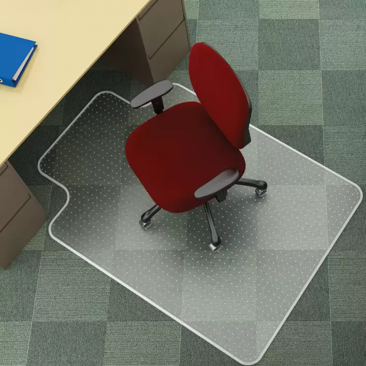 The studded design helps to secure the mat from sliding around, whilst protecting the carpet from caster wear, spills and heavy traffic. It is Greenguard Gold Certified, for low chemical emissions for healthier indoor air.