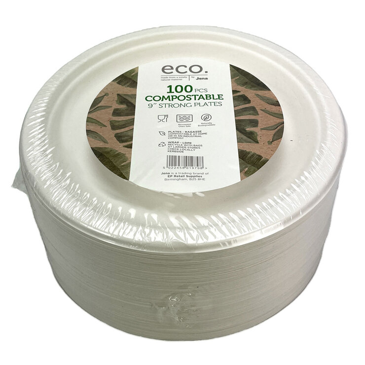 Jena Eco Compostable Strong Plates, 100 Pack
