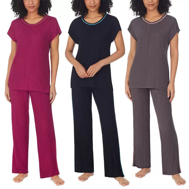 Carole Hochman Midnight Ladies' Ribbed 2 Piece PJ Set in 3 Colours and 4 Sizes