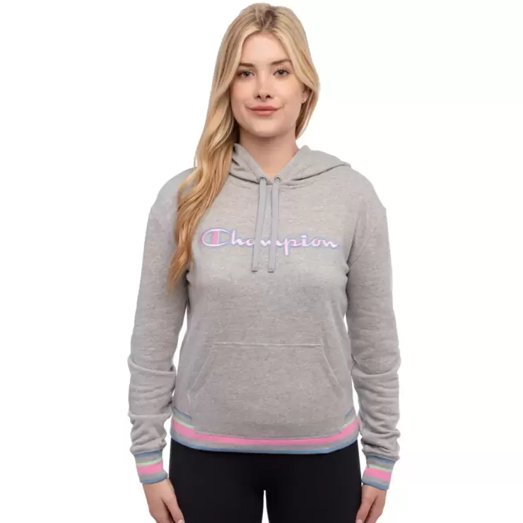 Champion Women’s Pullover Hoody is made from soft French terry fabrication. This hoody features the “Champion” logo in twill applique and satin embroidery for an elevated look.