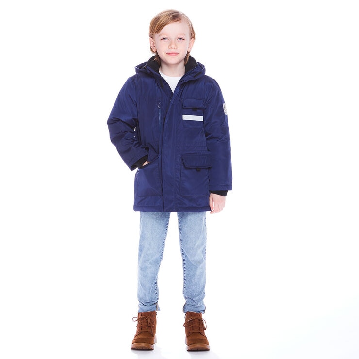 The Andy & Evan's Kid's Water Repellent Hooded Parka is stylish and offers the ultimate versatility to stay warm and dry. The Cloudloft™ fill offers high performance insulation in addition to a fleece lined hood and upper,so you stay warm and comfortable in all weather. The reflective trim will help for visbility at night.