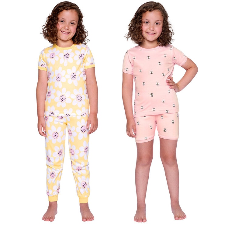 - Each pack contains two piece cotton pyjama set with short sleeve top and bottoms with ribbed cuffs and two cotton pyjama set with short sleeve top and shorts