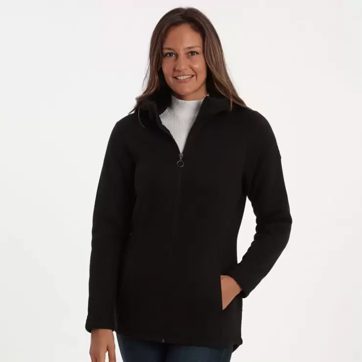 The Gerry Stratus Women's Fleece features high collar and hood for extra warmth for cold conditions. This cosy Sherpa fabric feels soft on the skin and has a drop-tail hem for additional coverage.