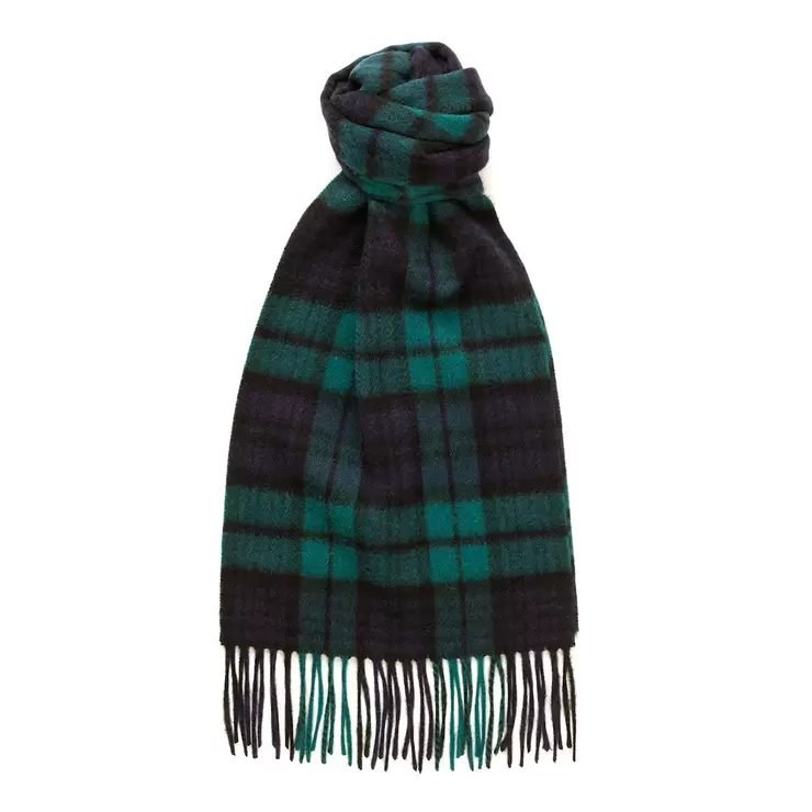 Glen Isla Patterned Cashmere Scarf, Black Watch