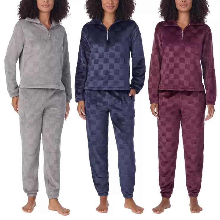 This Jane and Bleecker Lounge Set is cozy and warm. The sheared plush fabric is a checkered pattern, creating dimension and texture. Top and bottoms can be worn together for a full ensemble or separately. It’s perfect for outdoor activities or errands on chilly days as well as lounging at home.