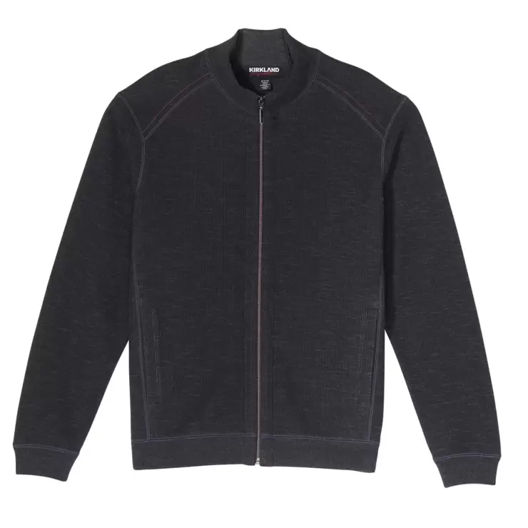 Kirkland Signature Men's Full Zip Sweater is a versatile product that can be worn over a T-shirt or casual shirt. Whether you are dressing up or dressing down, this jacket works for all occasions. The soft but substantial heather double-face fabric with contrast colour inside and contrast topstitching add interest for a more stylish look.