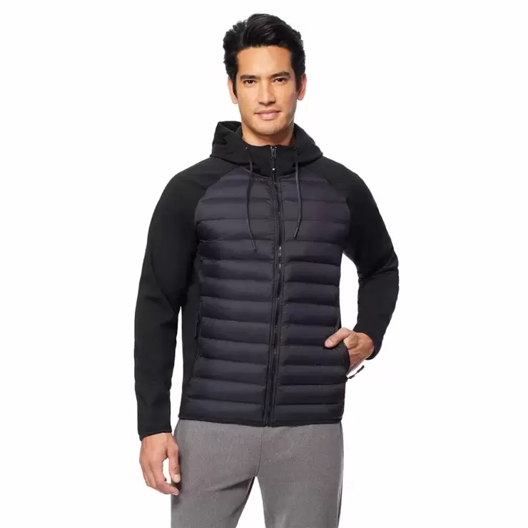 The 32 Degrees Men's Mixed Media Hooded Jacket is perfect for transitioning between seasons. With its lightweight warmth and a hood, this jacket will keep you comfortable whatever the weather. The sleek side panels offer a stylish twist to this soft and versatile jacket.