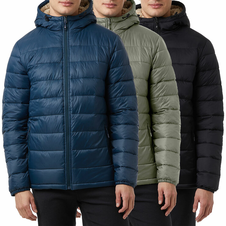 The 32 Degrees puffer jacket, lined with cosy sherpa, provides warmth and comfort for cold-weather days. It features a hood with adjustable drawstrings, zippered hand pockets, and elasticised cuffs to help lock in heat. It's perfect for everyday wear and easy to layer.