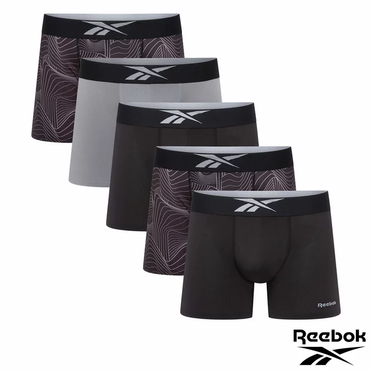 Upgrade your everyday essentials with the 5 Pack Reebok Performance Boxer Trunks, designed for comfort, breathability, and all-day support. Crafted for active lifestyles, these medium-length boxer trunks combine technical performance with a sleek, modern look. Made from high-quality all-over mesh fabric, these boxers deliver excellent airflow to keep you cool and dry, while advanced moisture-wicking technology helps draw sweat away from the skin during workouts or daily wear. The metallic microfibre waistband offers a secure, soft fit with a premium finish, ensuring comfort without digging in or rolling. Perfect for training, sports, or everyday use, these Reebok boxer trunks provide reliable performance with the trusted quality of Reebok.