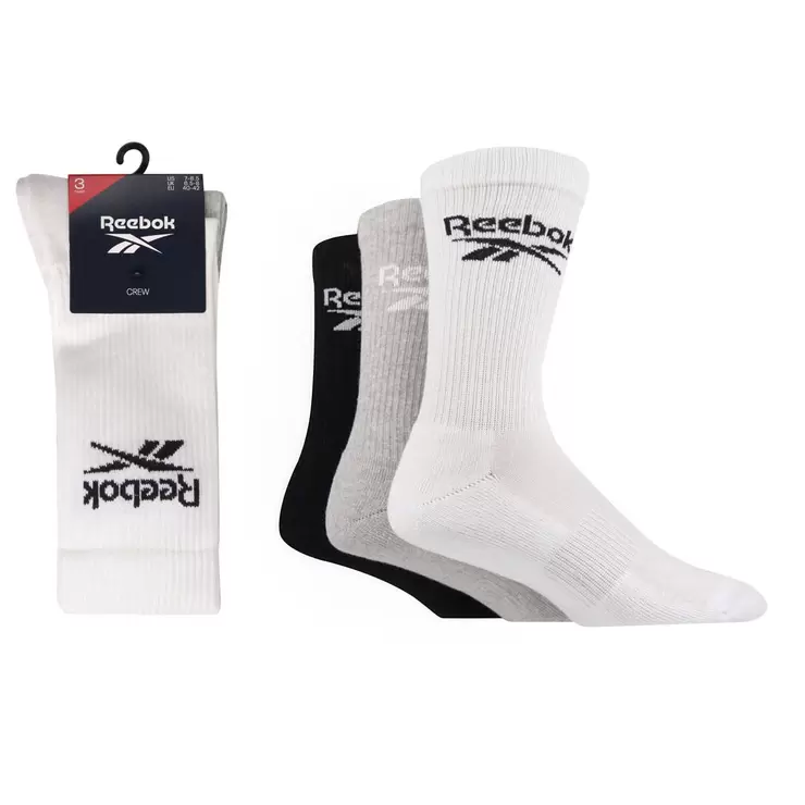 Make these cushioned sole, cotton blend Reebok crew socks the core of your everyday sock collection. Finished with the famous Reebok logo, these sporty, ribbed leg socks are soft and stretchy, with built-in arch supports for a snug feel and perfect fit. With smooth, flat seamless toes, these socks are designed to deliver comfort all day long.