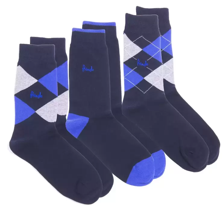 Update your sock drawer with these classic Pringle Waverly Men's Socks. These soft cotton rich socks are ideal for everyday comfort. Each pack includes two pairs of argyle patterned socks and one pair of plain socks.