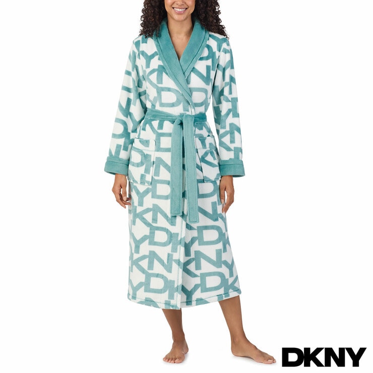 This full-length DKNY Ladies Wrap Robe is super soft and plush, providing warmth and coziness. It’s available in two beautiful solid colours with a tonal DKNY logo embroidered applique on the sleeve as well as a logo printed colour combination.
