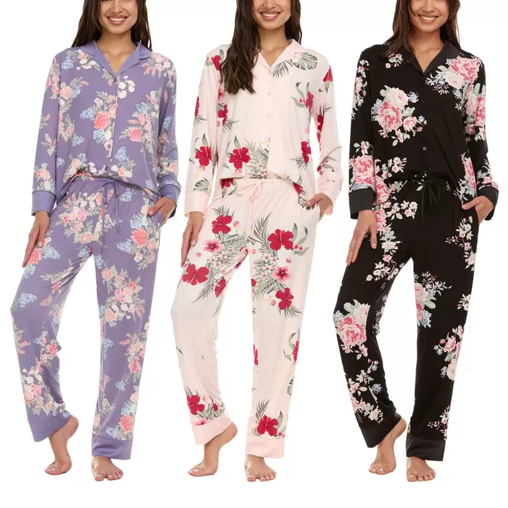 This Classic 2 Piece Notch Collar Pyjama has touches of satin trim which makes this elegant set the one you will want to wear every day. Long sleeve button down top and full length pants with pockets and drawstring make the pyjama set soft and comfortable with a relaxed fit.