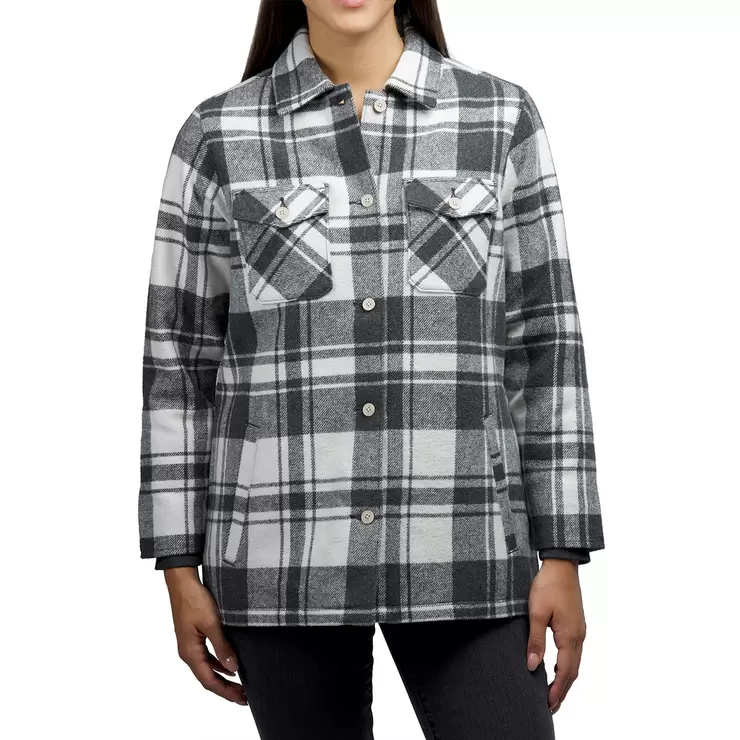 Stay warm in timeless style with this women’s wool blend shacket, designed for both comfort and everyday wear. Available in three classic plaid patterns, it features a button-front closure, two chest pockets, and fleece-lined side pockets to keep your hands cosy.The ribbed cuff sleeves help lock in warmth, while the quilted lining adds an extra layer of insulation without sacrificing style. Perfect for layering, this jacket brings together functionality and fashion for the colder months.