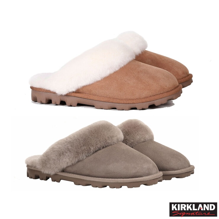 The Kirkland Signature Women's Shearling Slippers are made from the highest quality twin-face sheepskin leather which makes them ideal for all seasons. The slippers provide amazing comfort combined with a lightweight EVA outsole for solid traction.