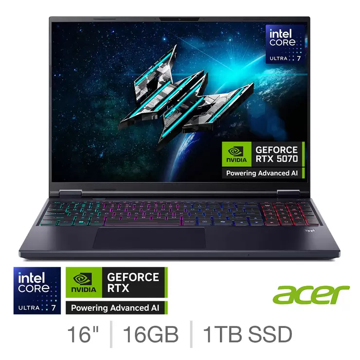 Acer Predator Helios NEO 16 AI, Intel Core Ultra 7, 16GB RAM, 1TB SSD, NVIDIA GeForce RTX 5070, 16 Inch Gaming Laptop, NH.QX3EK.002
