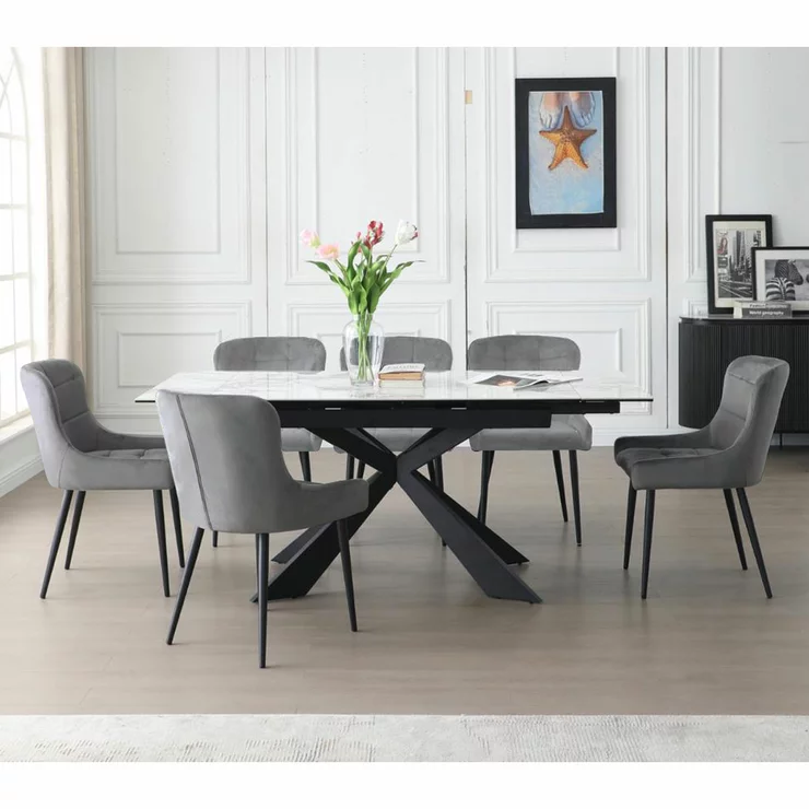 Indus Valley Kia Ceramic Extending Dining Table + 6 Grey Chairs, Seats 6-8