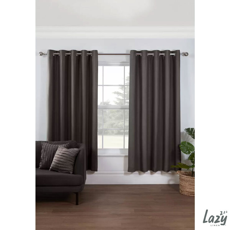 Lazy Linen 100% Washed Linen Charcoal Curtain, 167 x 183 cm