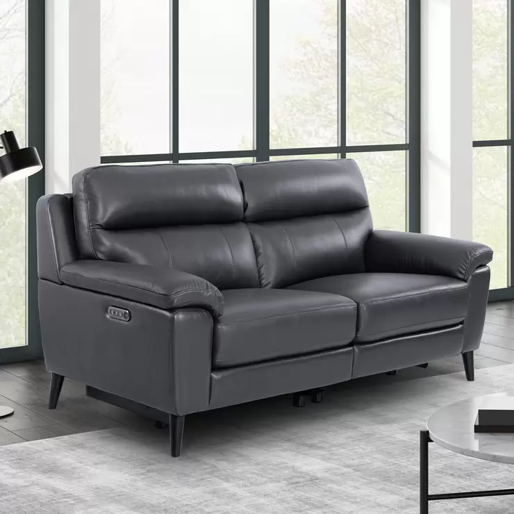 Grace Dark Grey Leather Power Reclining Large 2 Seater Sofa