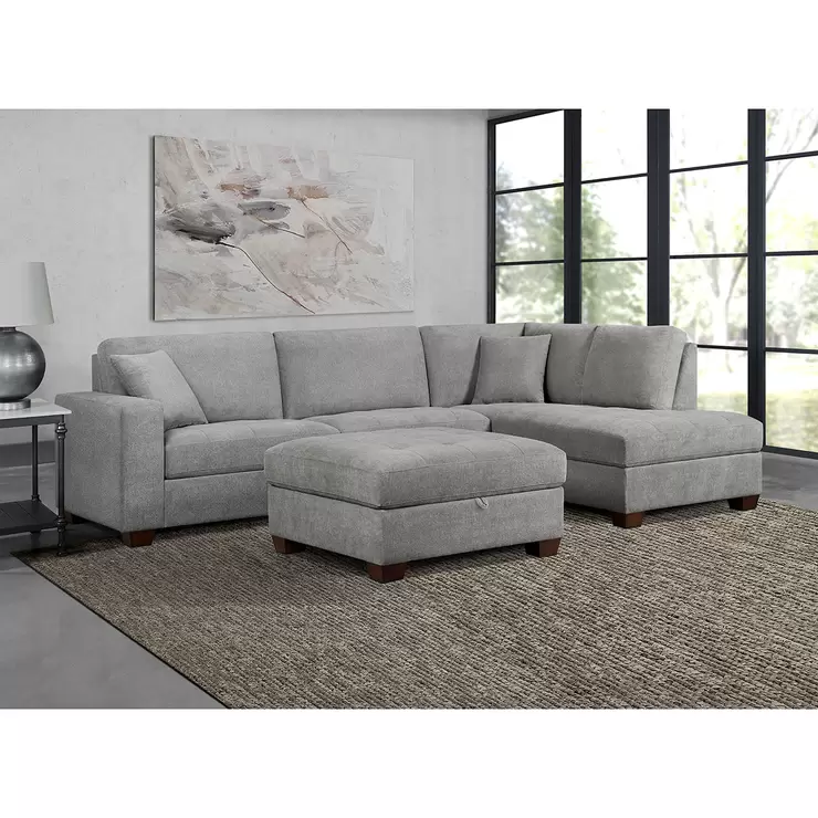 Thomasville Miles Grey Fabric Corner Sofa with Storage Ottoman