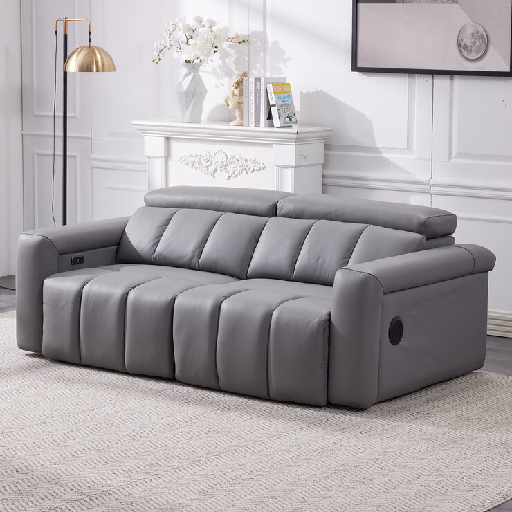 Dallas Grey Leather Power Sliding 3 Seater SofaDallas Grey Leather Power Sliding 3 Seater Sofa
