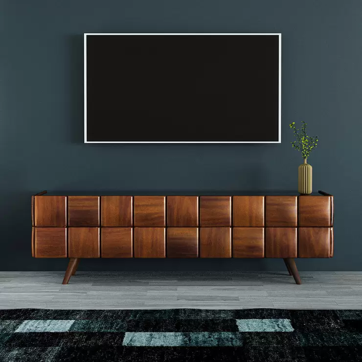 An extravagant feature piece, the Delano TV Stand by AVF features a luxury quilted walnut wood design that will bring a timeless richness to your living room.