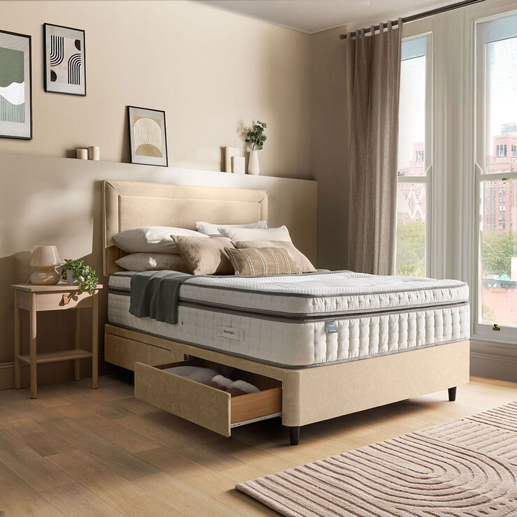 Silentnight Velvet 4 Drawer Divan Base with Malvern Headboard in Almond in 3 Sizes
