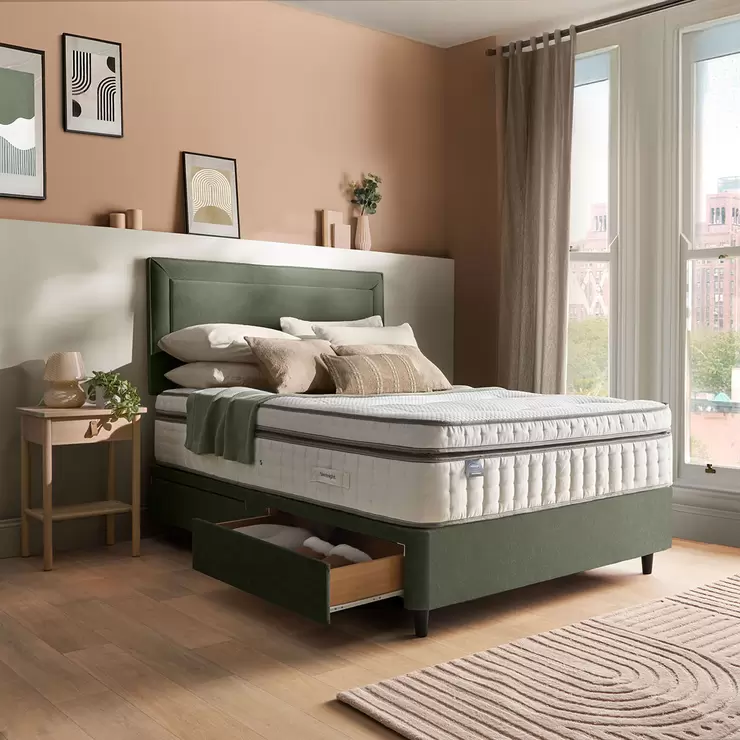 Silentnight Velvet 4 Drawer Divan Base with Malvern Headboard in Hunter in 3 Sizes