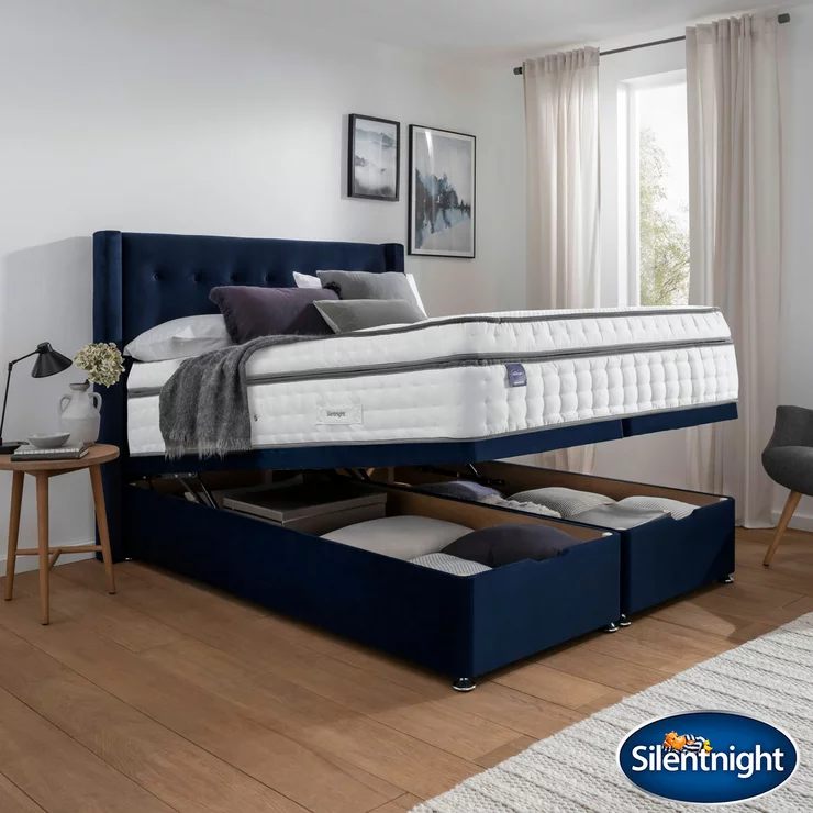 Silentnight Velvet Full Ottoman Divan Base with Bloomsbury Headboard in 2 Colours & 3 Sizes