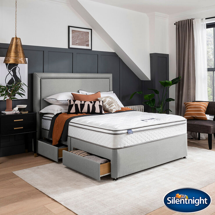 Silentnight 1200 Pocket Memory Cushion Top Mattress & Slate Grey Divan, King Size