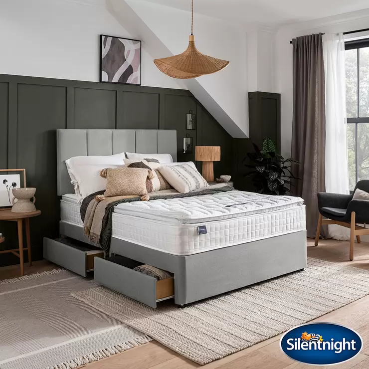 Silentnight Eco Comfort 800 Pillowtop Mattress & Slate Grey Divan in 5 Sizes