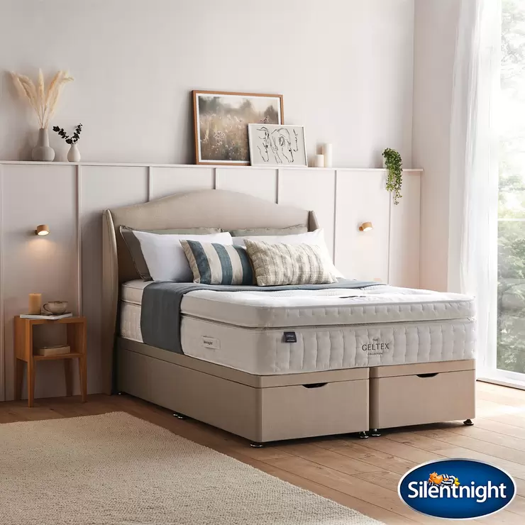 Silentnight Geltex 4000 Pocket Boxtop Mattress & Sandstone Full Ottoman Divan in 3 Sizes
