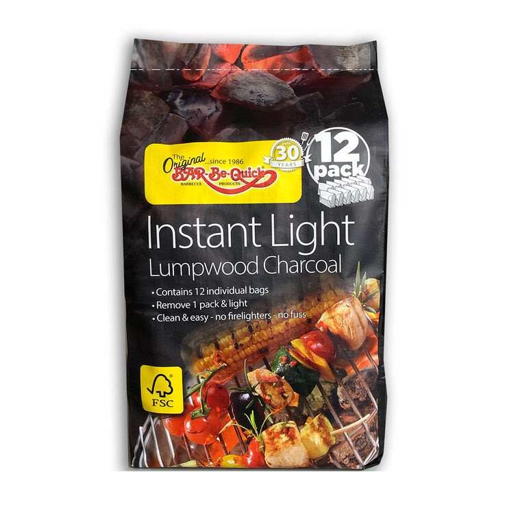 The Bar-Be-Quick Instant Light Charcoal is kept in its own paper bag, simply place on the BBQ & light the individual bag with a single match. Our pack contains 12 inner bags. Each individual bag is one barbecue experience & burns for at least 120 minutes.