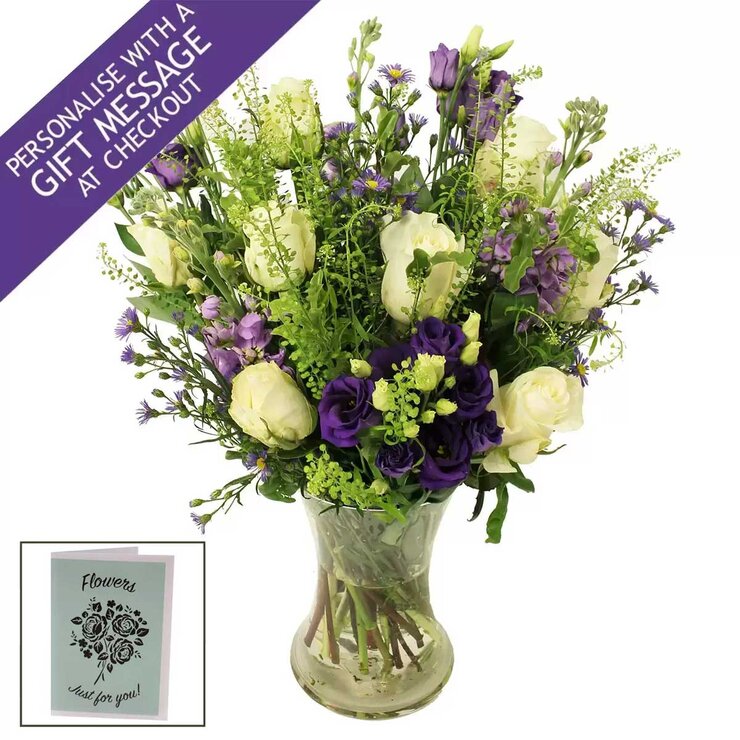 For the perfect Mother's Day gift, this beautiful “Cottage Garden” style bouquet is a perfect treat for special Mums, partners, friends, relatives or deserving colleagues. Featuring classic white roses, spring asters and scented stocks with a host of complimentary flowers, fillers and foliages, it is certain to put a smile of the face of the recipient.