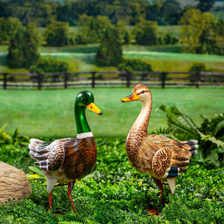 The Metal Mallard Ducks, set of 2, are hand crafted from 100% steel. Powder coated with an outdoor enamel finish with amazing real features and details. These beautifully handcrafted metal mallard ducks will bring a unique style to your home or garden, adding a special touch that is unlike the usual yard décor.
