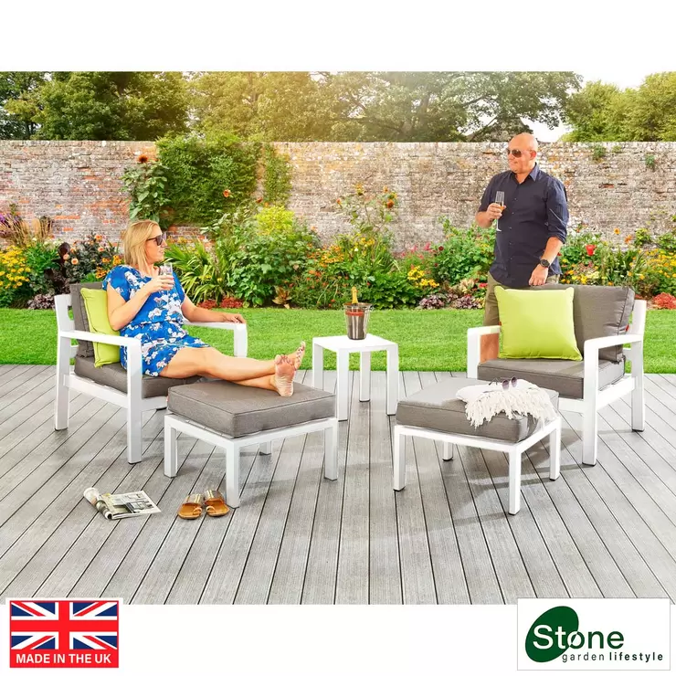 Stone Garden 5 Piece Armchair and Footstool Patio Set in White