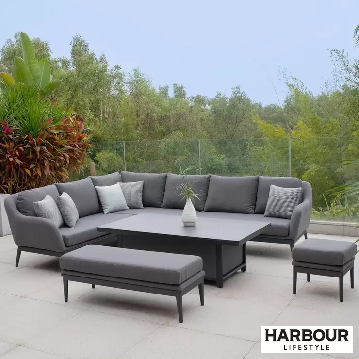 Harbour Lifestyle Luna Corner Patio Set with Rising Table (Right or Left Hand) + Cover