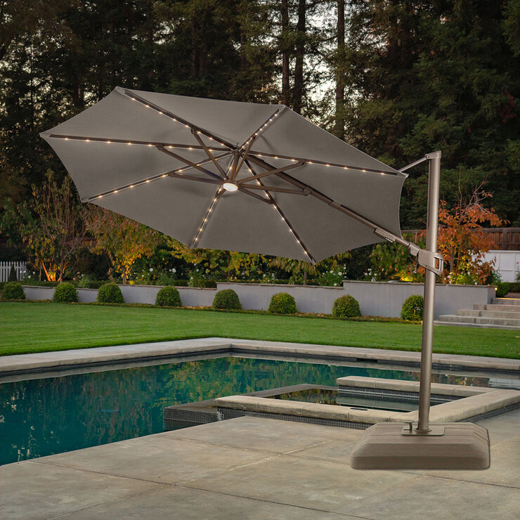 SunVilla 11ft (3.3m) Solar LED Round Cantilever Umbrella with Base in Grey