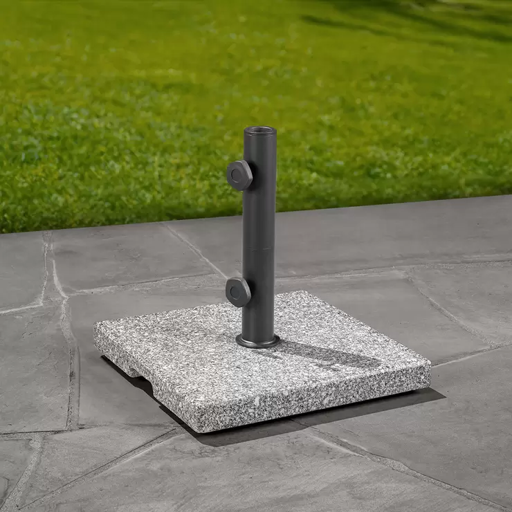 The two-piece pole design is versatile, fitting most table types and seamlessly accommodating umbrellas with up to a 5 cm diameter pole, ensuring a wide range of compatibility. One of the standout features of this base is its hidden wheels and handle, which offer easy mobility. This thoughtful addition allows you to move your umbrella with ease, whether you're following the sun or making room for outdoor activities. The Pembrooke Granite Umbrella Base is more than just a functional item; it's a stylish outdoor accessory that ensures your umbrella is securely and elegantly anchored, enhancing the overall look and feel of your patio or garden area.